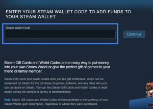 Select“Redeem a Steam Wallet Code” - Click“Continue”